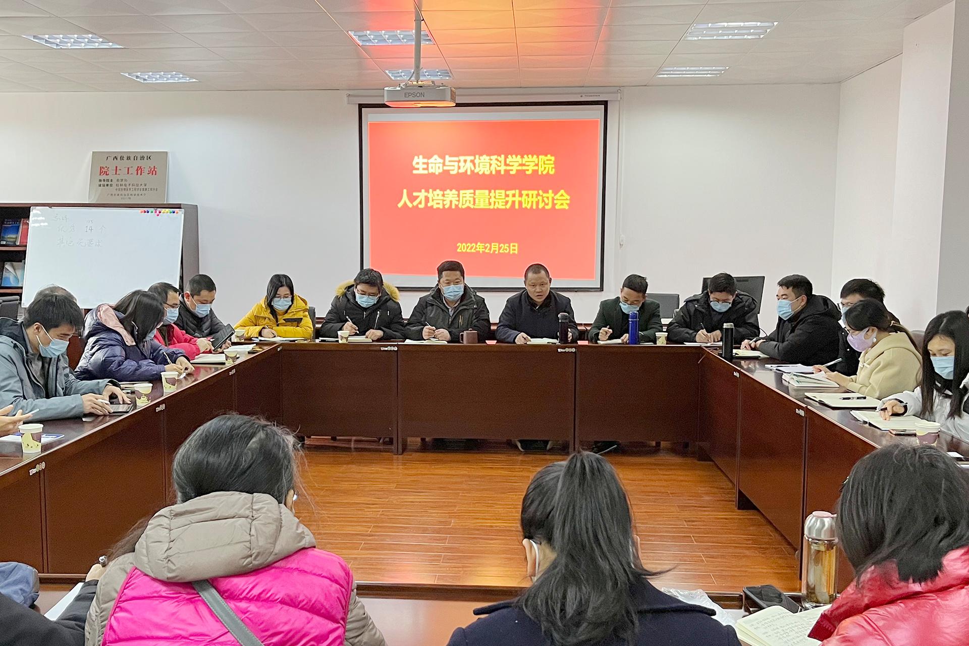 2月25日下午,生命与环境科学学院在花江校区第11教学楼A404室召开学院人才培养质量提升研讨会。学院领导班子成员、教学督导委员会委员、各系室负责人、各年级辅导员以及教师代表参加会议,会议由学院院长陈洪波主持。