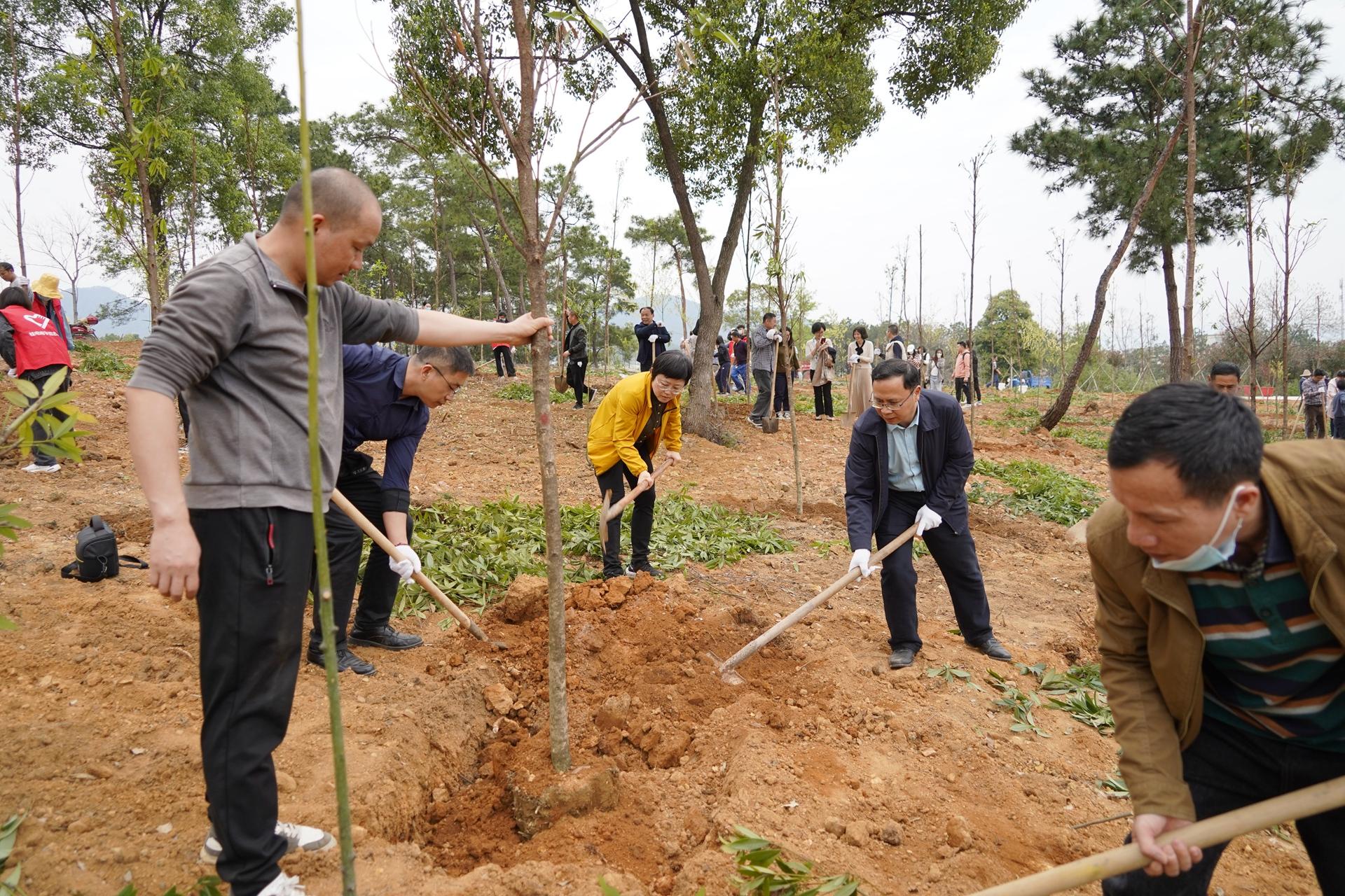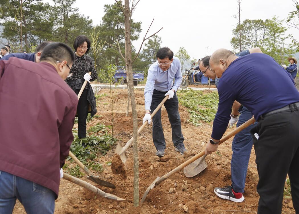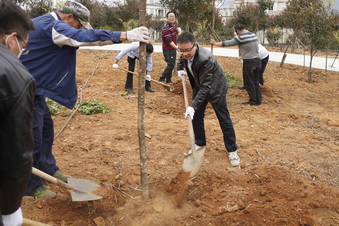 最是一年春光好,植树添绿正当时。在我国第44个植树节到来之际,3月11日下午,校领导唐平秋、徐华蕊、陈贵英、聂慧、刘宝臣、钟平、梁启谈、潘开林、曹辉景带领相关部门负责人、教职员工和学生志愿者,在花江校区球类馆北侧樱花园小山坡开展植树绿化活动。