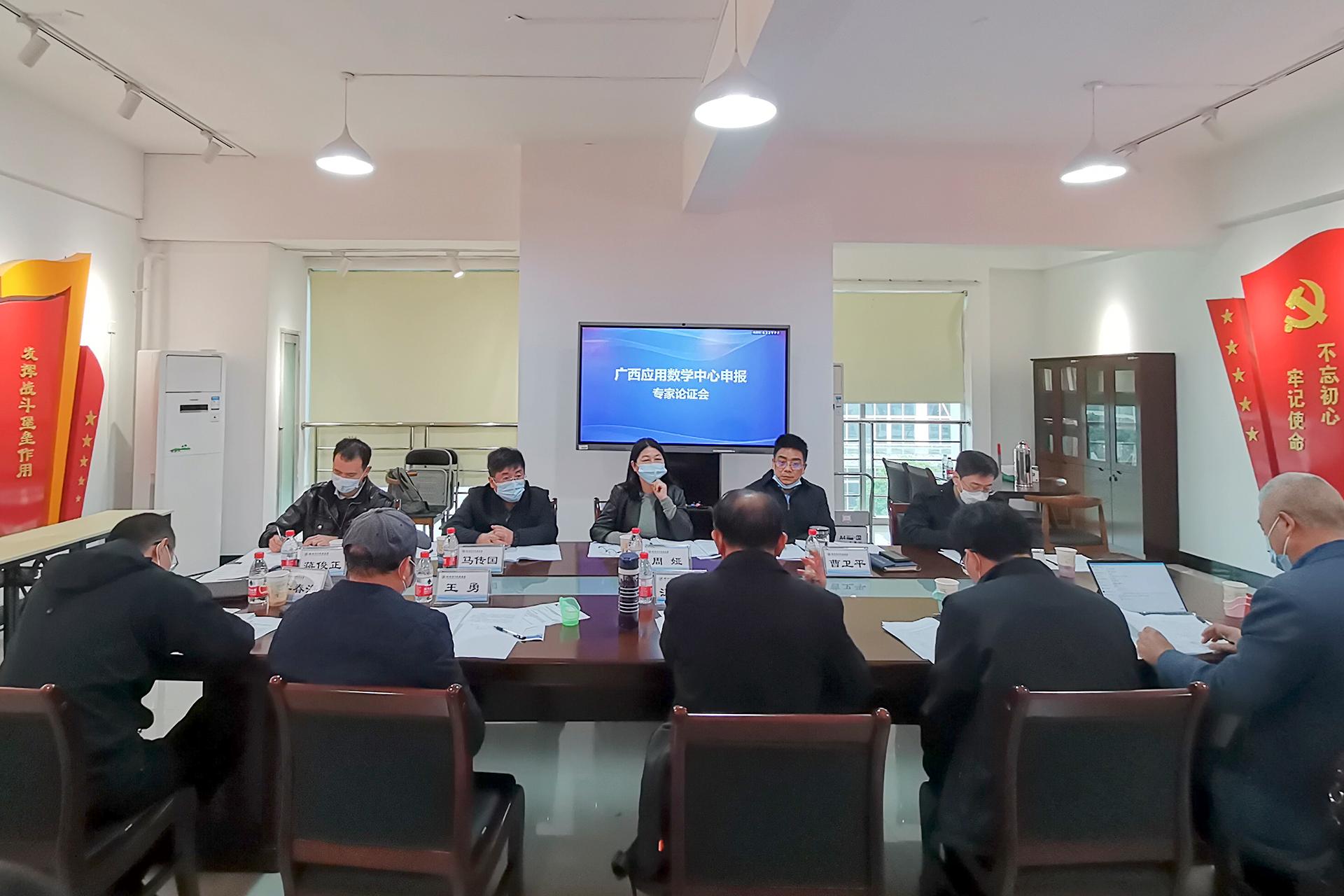 4月1日上午,广西应用数学中心申报工作专家论证会在我校花江校区办公楼322会议室召开。副校长周娅出席会议,相关领域专家、科研院相关科室人员参会,会议由科研院院长曹卫平主持。