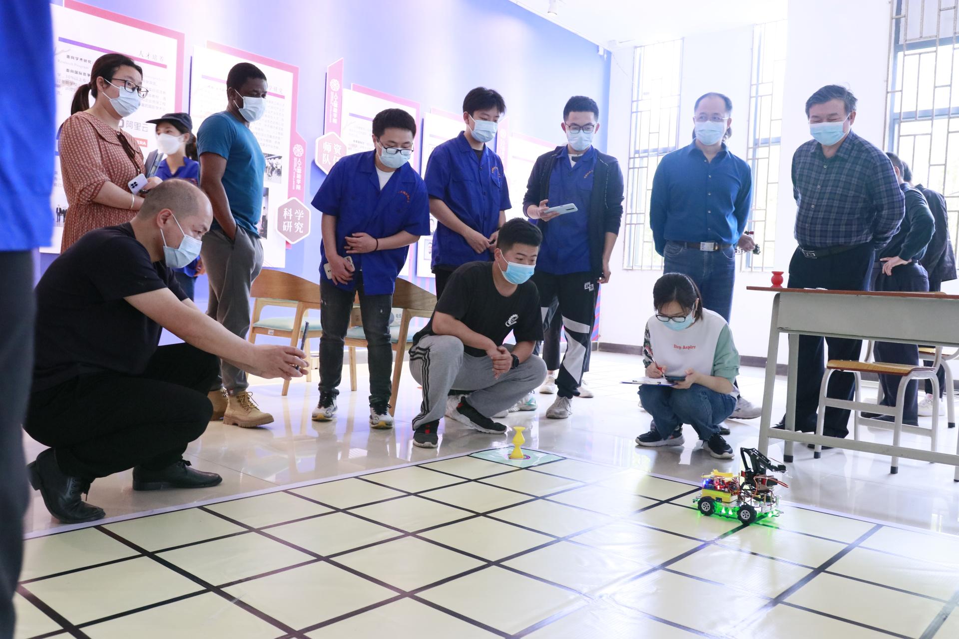 4月13日上午,教学实践部面向人工智能学院学生开设的《工程训练(高级)》实训创新作品验收与展示活动在实训楼智能厅举行。以课程作品验收为契机,人工智能学院机器人工程专业教研室主任Paul一行7人与教学实践部机械工程训练中心8位指导教师进行了现场交流与研讨。教学实践部相关负责人亲临现场观摩验收活动并指导。