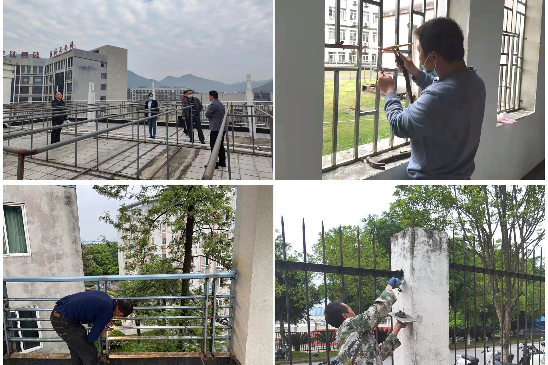 经现场排查,发现学生宿舍区多处走廊栏杆扶手松动、立杆缺失、金鸡岭校区六教至十教连廊栏杆生锈严重、花江校区大门右边围墙边界处有较大洞口等问题,梳理并汇总各类安全问题共计35项。通过制定安全问题清单,明确整改措施,在各部门通力合作下,历时20余天,清单所列安全隐患已逐一整改销项,有效消除了校园防护设施安全隐患,筑牢校园师生安全防线。
