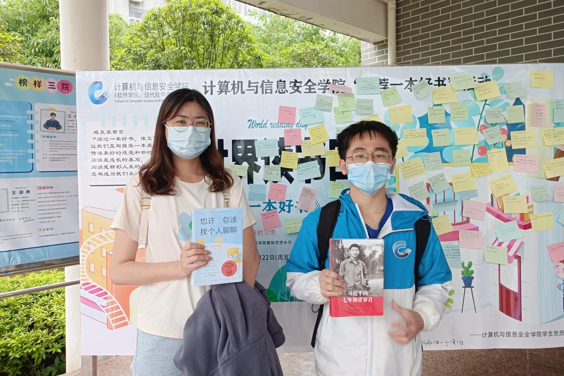 2022年4月22日中午,计算机与信息安全学院党委在花江校区第五教学楼一楼开展“推荐一本好书”主题党日活动。