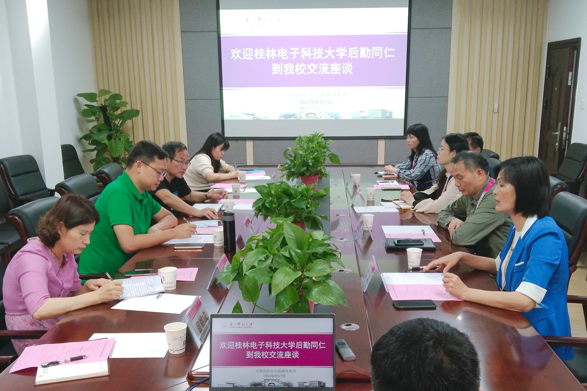 4月27日上午,后勤处副处长徐波一行6人赴广西师范大学后勤保障处/后勤服务集团开展调研,广西师范大学后勤保障处副处长、后勤服务集团副总经理闭献树热情接待了徐波副处长一行,并进行了座谈交流。