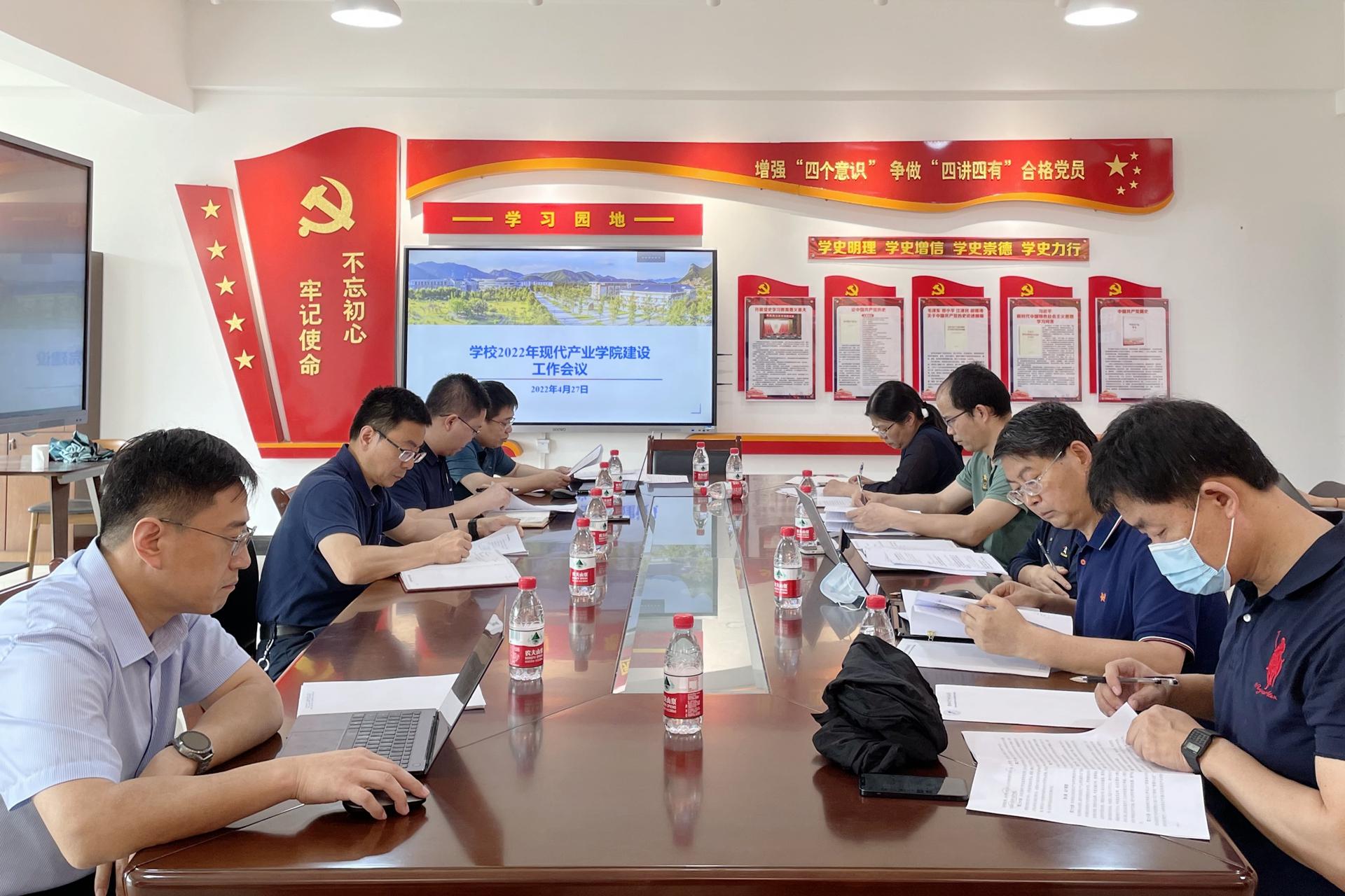 4月27日上午,我校在花江校区办公大楼322会议室召开2022年现代产业学院建设工作会议。副校长潘开林出席会议,教务处、我校四个广西示范性现代产业学院主要负责人参加会议。