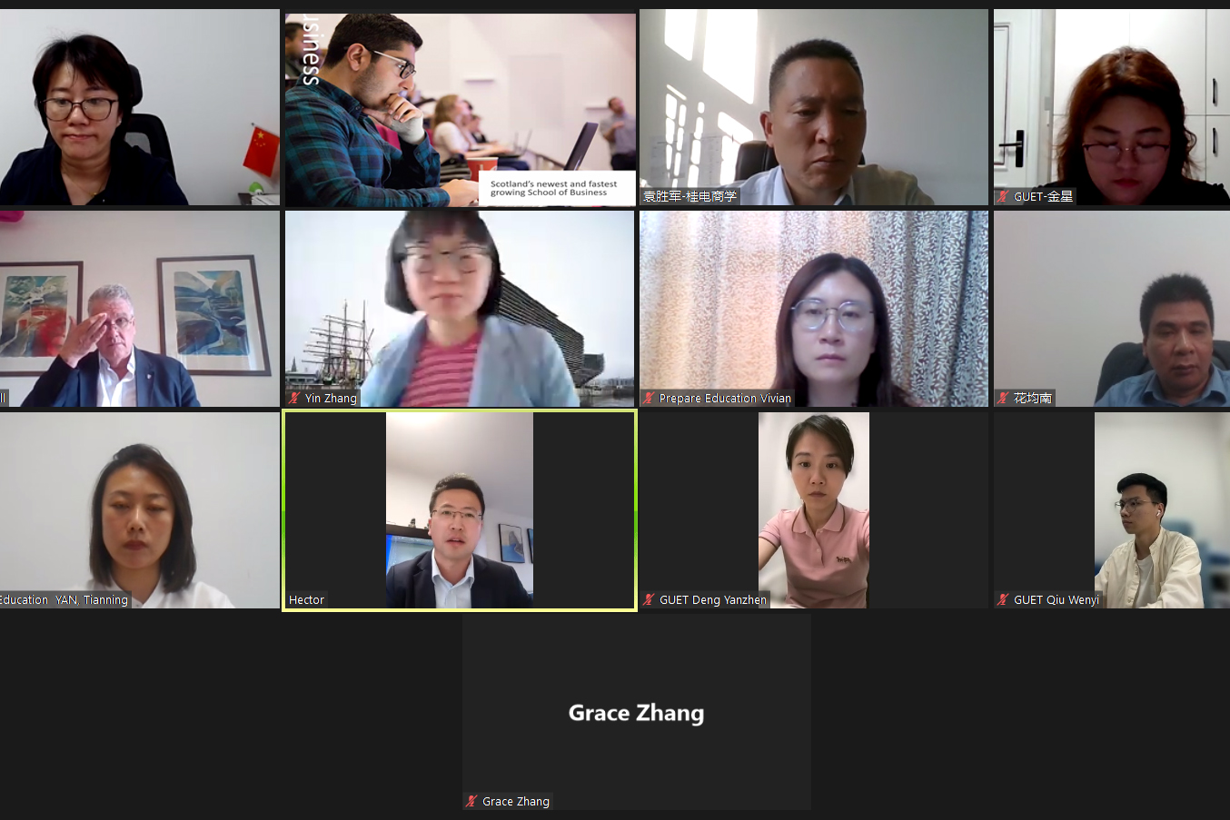 5月5日下午,我校与英国邓迪大学召开线上会议探讨两校“2+2”项目合作交流事宜。英国邓迪大学商学院国际副院长Bill Russell、我校国际合作与交流处处长王玥、商学院院长袁胜军及相关工作人员参加会议。