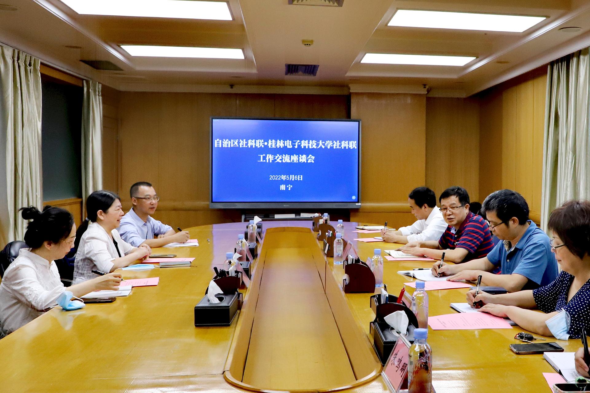 5月6日,自治区社科联·桂林电子科技大学社科联工作座谈会在南宁召开,副校长周娅带领科研院相关人员赴自治区社科联交流工作。自治区社科联副主席刘俊出席会议。