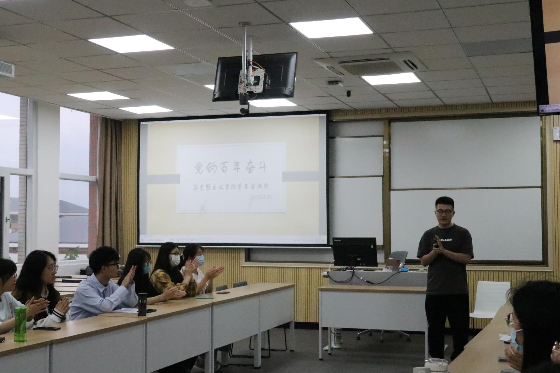 2022年5月20日,马克思主义学院研究生青年宣讲团面向我校学生青年志愿者协会开展首次理论宣讲活动。宣讲以“百年奋斗谋复兴,勇毅前行兴伟业”为主题,吸引了来自不同专业的50余名青协会员参加。