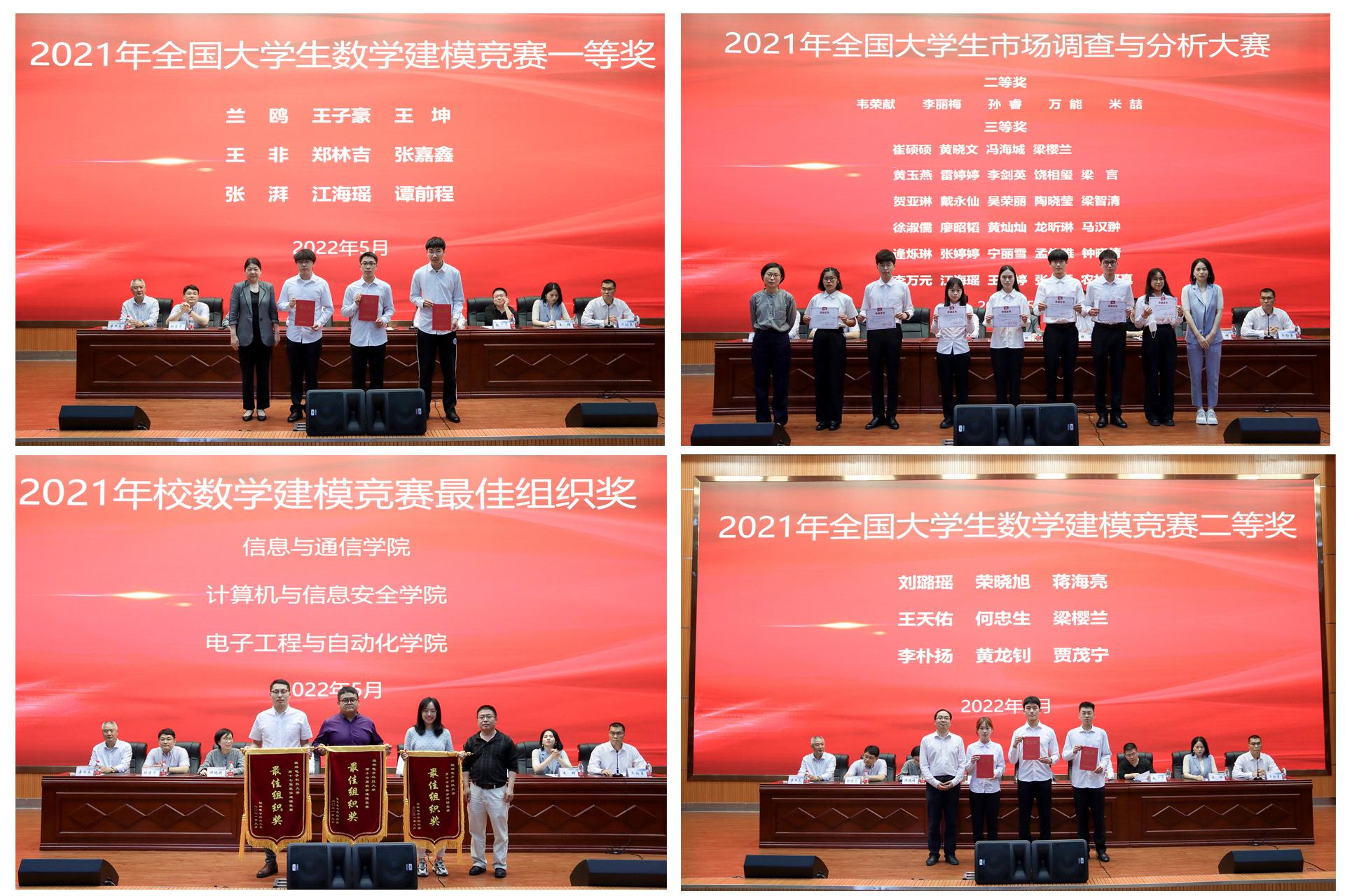 启动仪式上,与会嘉宾为2021年全国大学生数学建模竞赛、全国大学生市场调查与分析大赛等获奖单位和个人代表进行了颁奖。