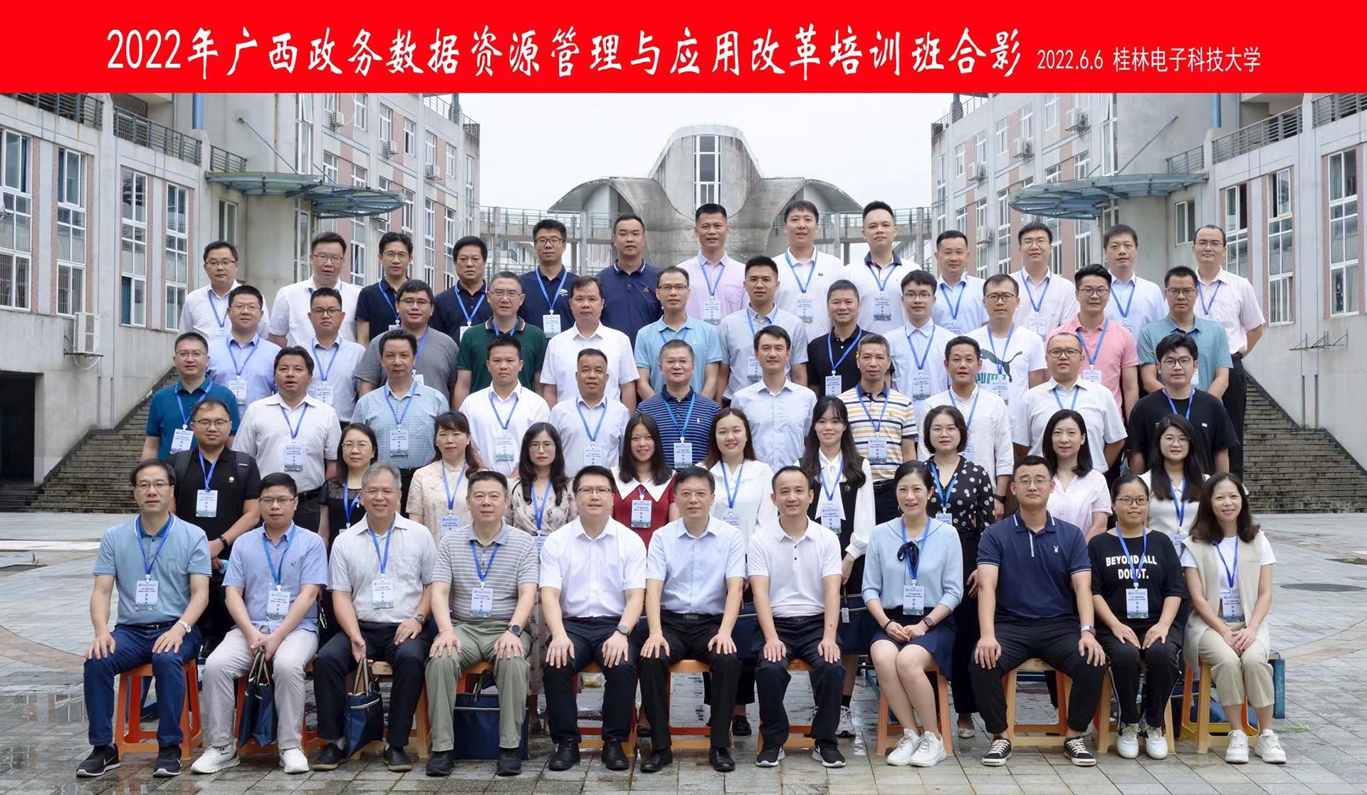 2022年6月6日至10日,由自治区大数据发展局主办,广西干部教育培训桂林电子科技大学基地承办的2022年广西政务数据资源管理与应用改革培训班在我校顺利举办,这也是我校今年举办的第一个自治区直属单位处级领导干部培训班。培训班学员来自区内各中直、区直相关单位以及各市负责政务数据资源管理的领导干部或业务骨干,共计54人参加了此次培训。