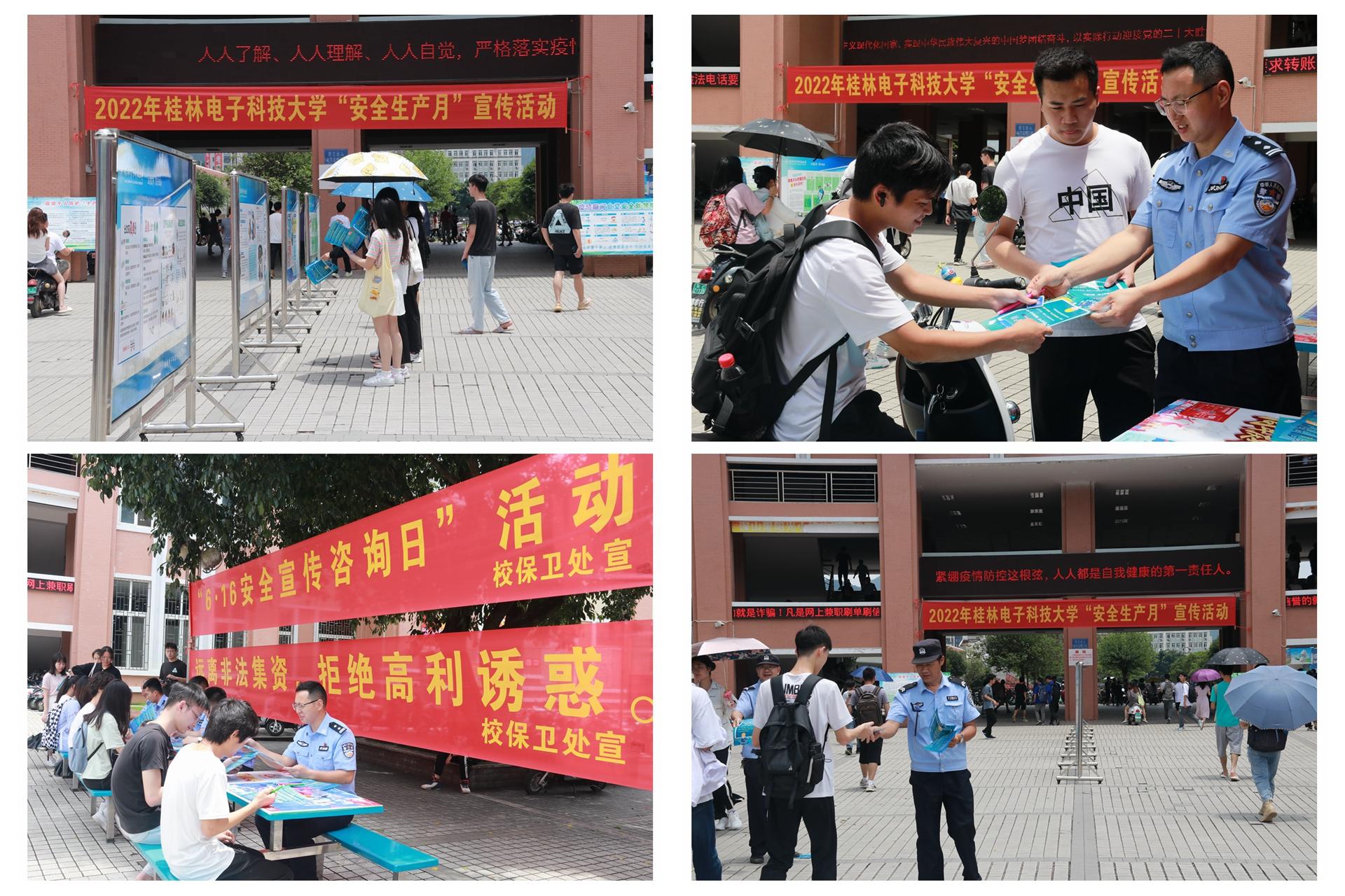 今年6月是全国第21个“安全生产月”。6月15日上午,保卫处联合灵川县公安局以“遵守安全生产法,当好第一责任人”为主题,在花江校区食堂广场开展安全生产月暨防范非法集资宣传教育活动。