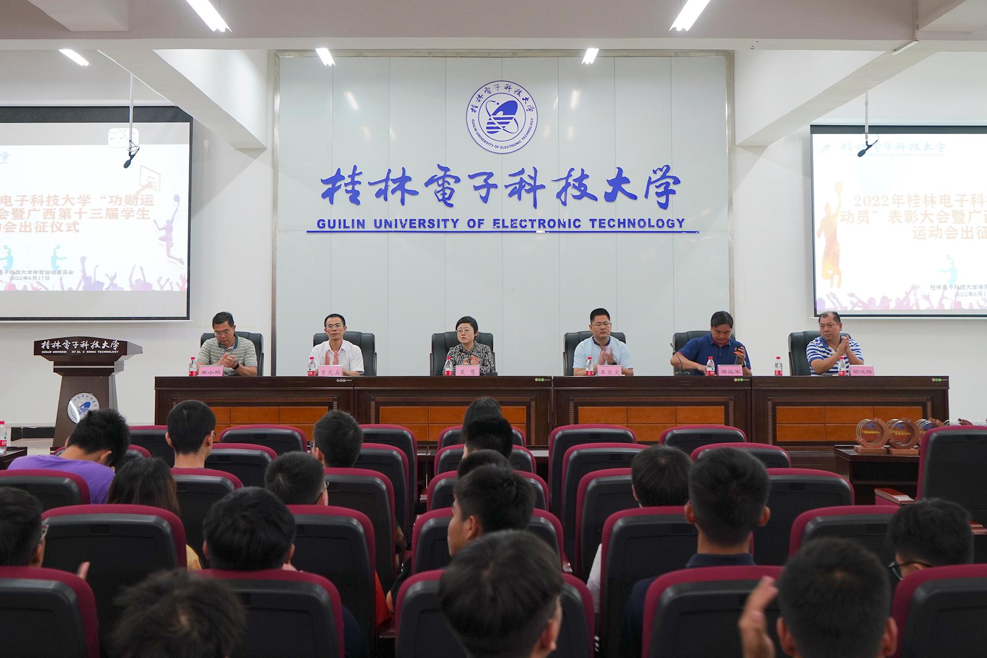 为表彰为学校体育事业作出过突出贡献的毕业生运动员,6月17日上午,学校在大学生活动中心一楼宣讲室召开2022年“功勋运动员”表彰大会暨广西区第十三届学生运动会出征仪式。校党委副书记聂慧出席大会,学工部(处)、校团委、体育部等部门负责人,以及各教练员和运动员参加表彰大会。表彰大会由体育部主任梁益军主持。
