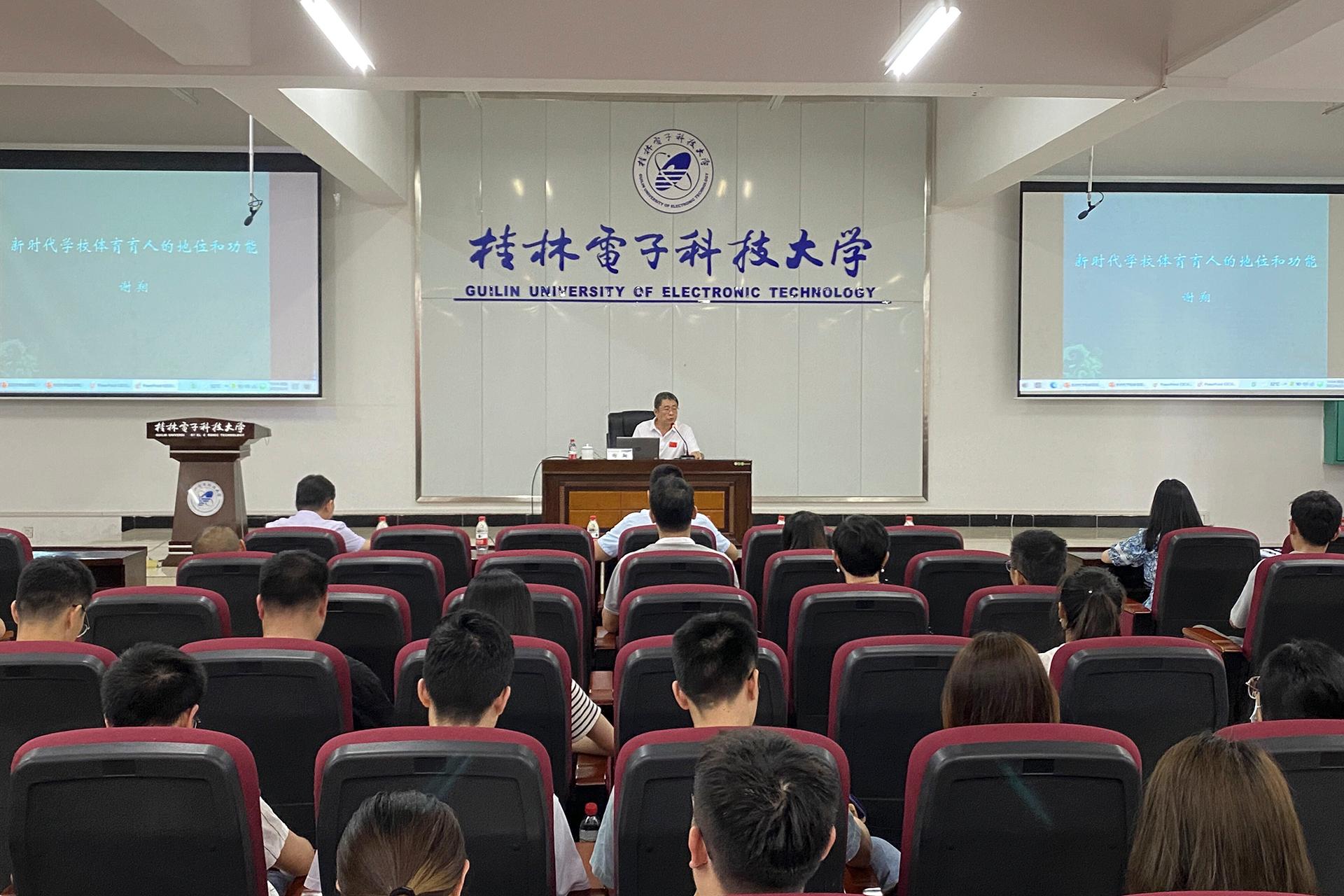 为进一步构建德智体美劳全面培养的教育体系,提升辅导员服务育人工作能力,6月23日下午,由校党委宣传部主办、学生工作处联合体育部共同承办的“新时代文明实践所”2022年第三场理论宣讲活动在花江校区活动中心110宣讲室举行,活动邀请广西师范大学体育学院谢翔教授主讲。
