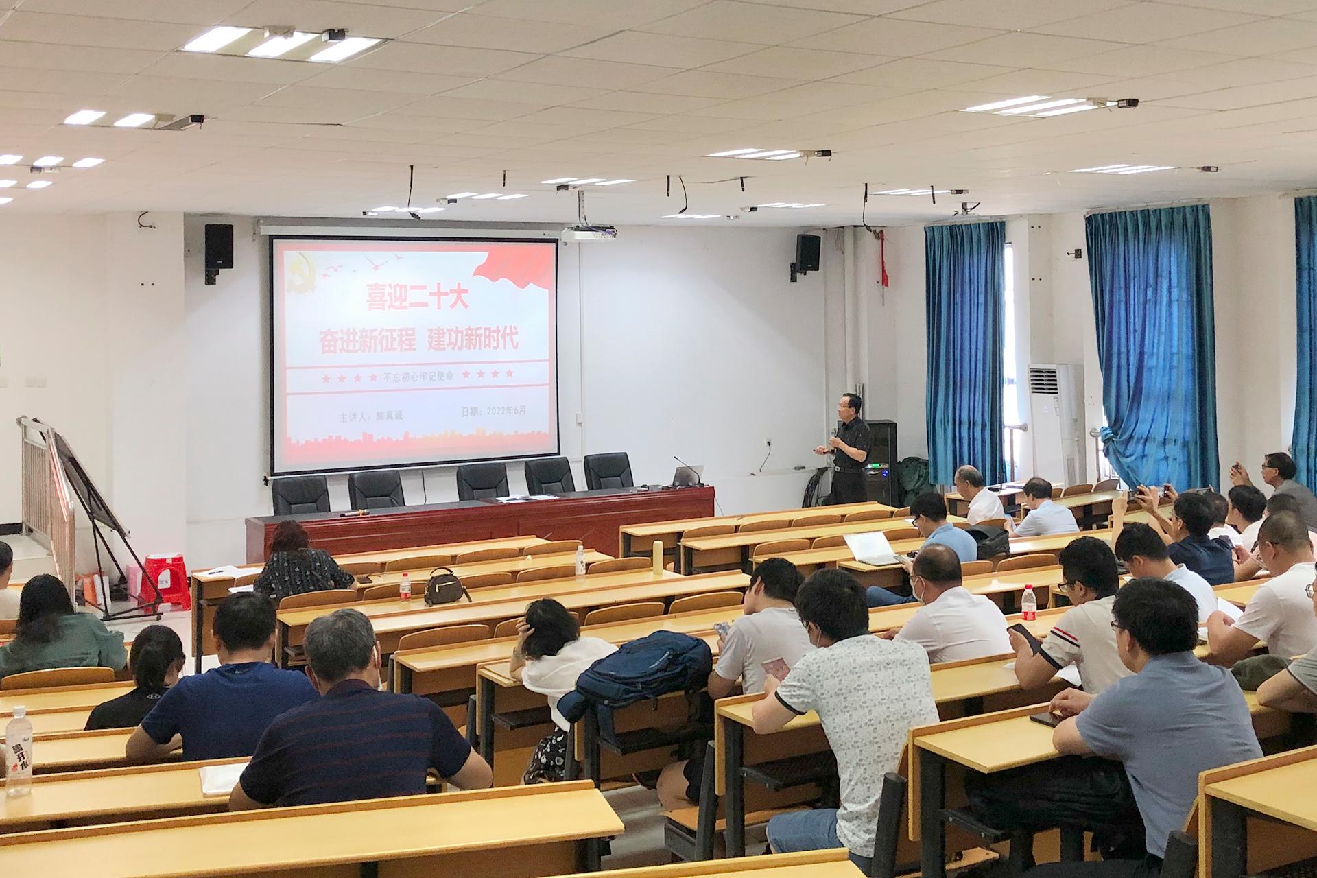 6月24日下午,电子工程与自动化学院院长陈真诚以《喜迎二十大,奋进新征程,建功新时代》为题,为学院全体教职工党员上了一堂生动的专题党课。课堂上,陈真诚从“了解党的二十大、学习领会自治区第十二次党代会精神,立足岗位做奉献,做新时代党员”三个方面全面讲述了新时代党员应该“怎么看、怎么办、怎么干”,号召全体教职工党员在教书育人、科学研究、社会服务等各方面工作中要继续冲锋在前、敢于担当、作出表率,继续践行“功成不必有我,建功必须有我”的决心,以更加优异的成绩迎接党的二十大胜利召开。