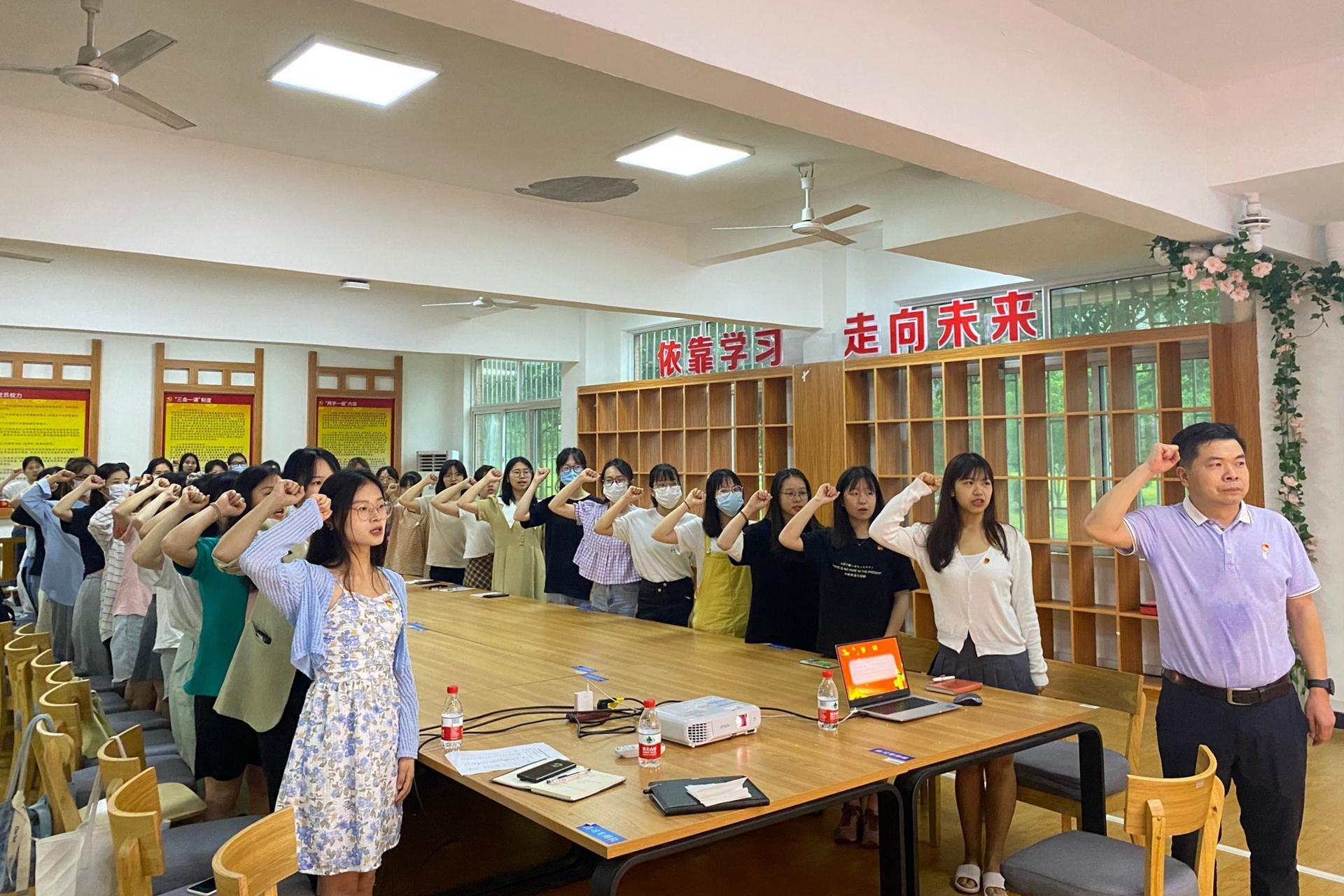 课后,学生党员表达感受与决心;由杨丹江书记、段筱雨副书记为毕业生党员佩戴党徽。最后,在杨丹江书记的带领下,集体重温入党誓词对党庄严宣誓,他强调同学们要时刻牢记党员身份,继续传承桂电精神,做有担当、守纪律的新时代合格党员。