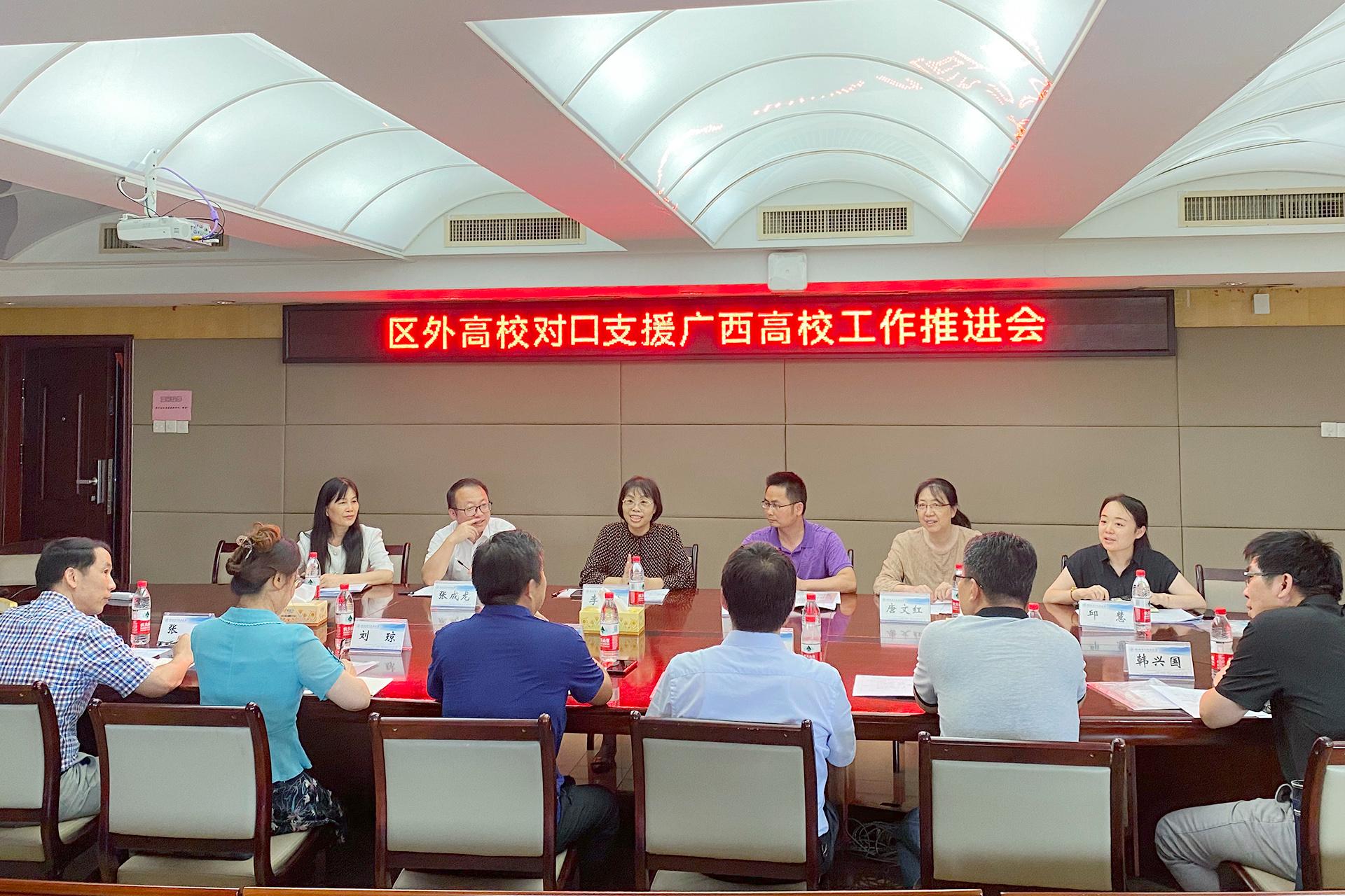 7月11日下午,区外高校对口支援广西高校工作推进会在我校金鸡岭校区勤政楼403会议室召开。自治区教育厅高教处处长李美清,我校副校长张文涛出席会议,来自区内8所高校对口支援相关工作负责人参加会议。