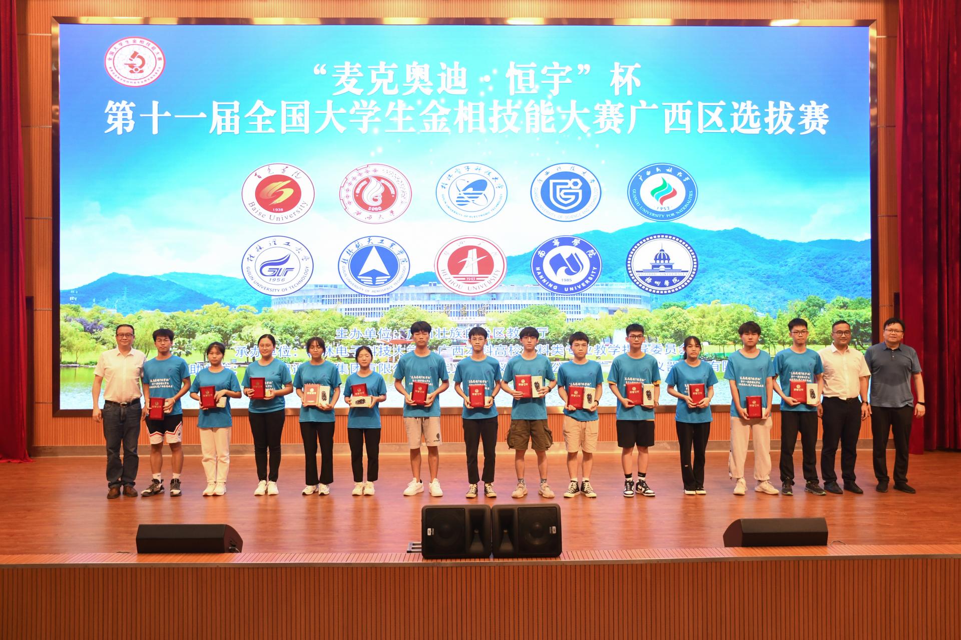 7月17日-18日,由广西壮族自治区教育厅主办,桂林电子科技大学和广西本科高校材料类专业教育指导委员会承办的第十一届全国大学生金相技能大赛广西区选拔赛在我校举行。经过激烈角逐,最终评选出一等奖13项,二等奖18项,三等奖32项,团体奖1项。我校获得本次大赛团体奖,派出的15名选手全部获奖,其中获一等奖7项、二等奖7项以及三等奖1项。
