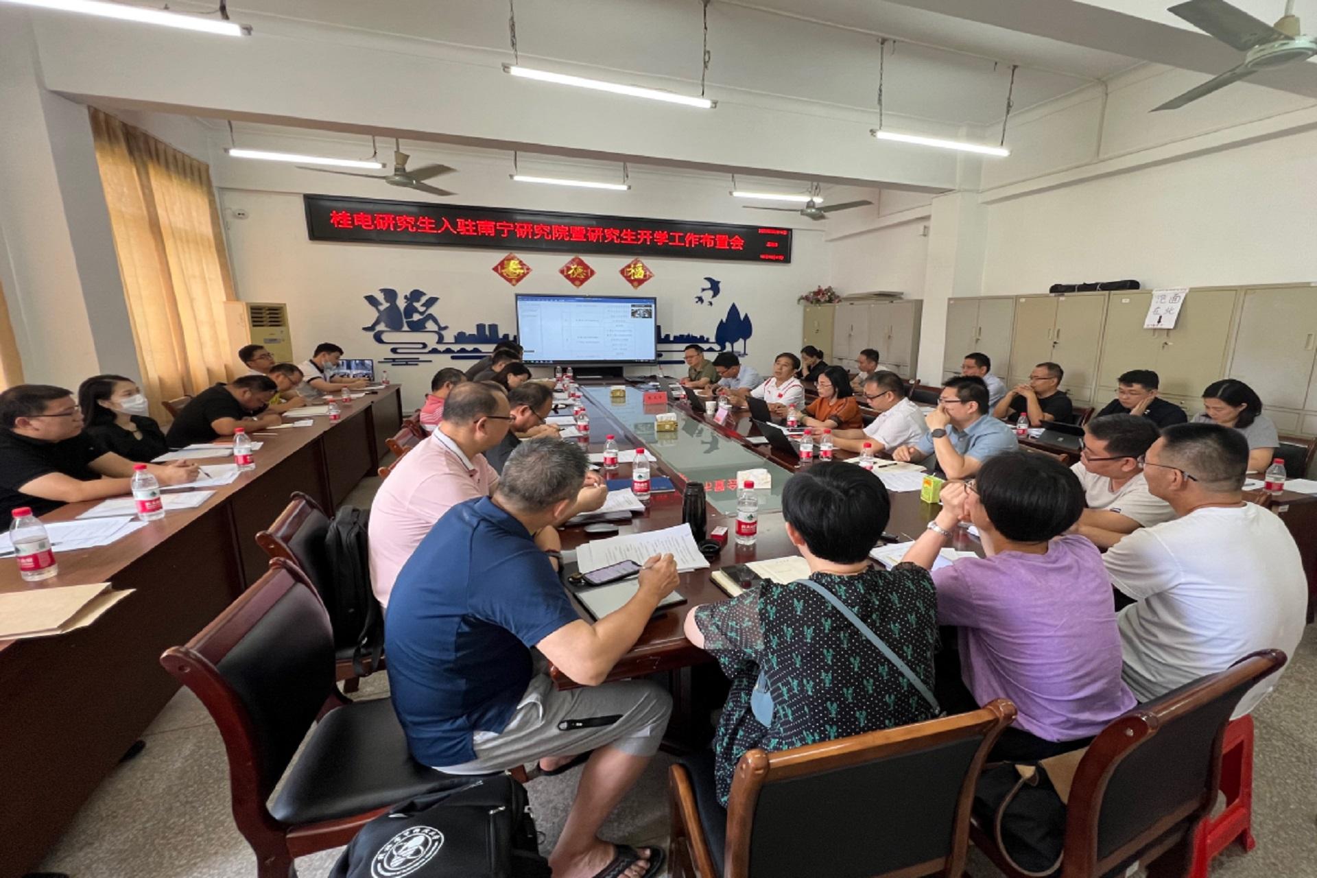 8月14日上午,研究生院在金鸡岭校区2407会议室以线上线下相结合的方式召开我校研究生入驻南宁研究院暨研究生开学工作布置会。副校长张文涛、学工部(处)、研工部、保卫处、桂电南宁研究院、校医院、各学院相关领导和研究生辅导员参加本次会议,会议由研究生工作部部长、院长段雪峰主持。