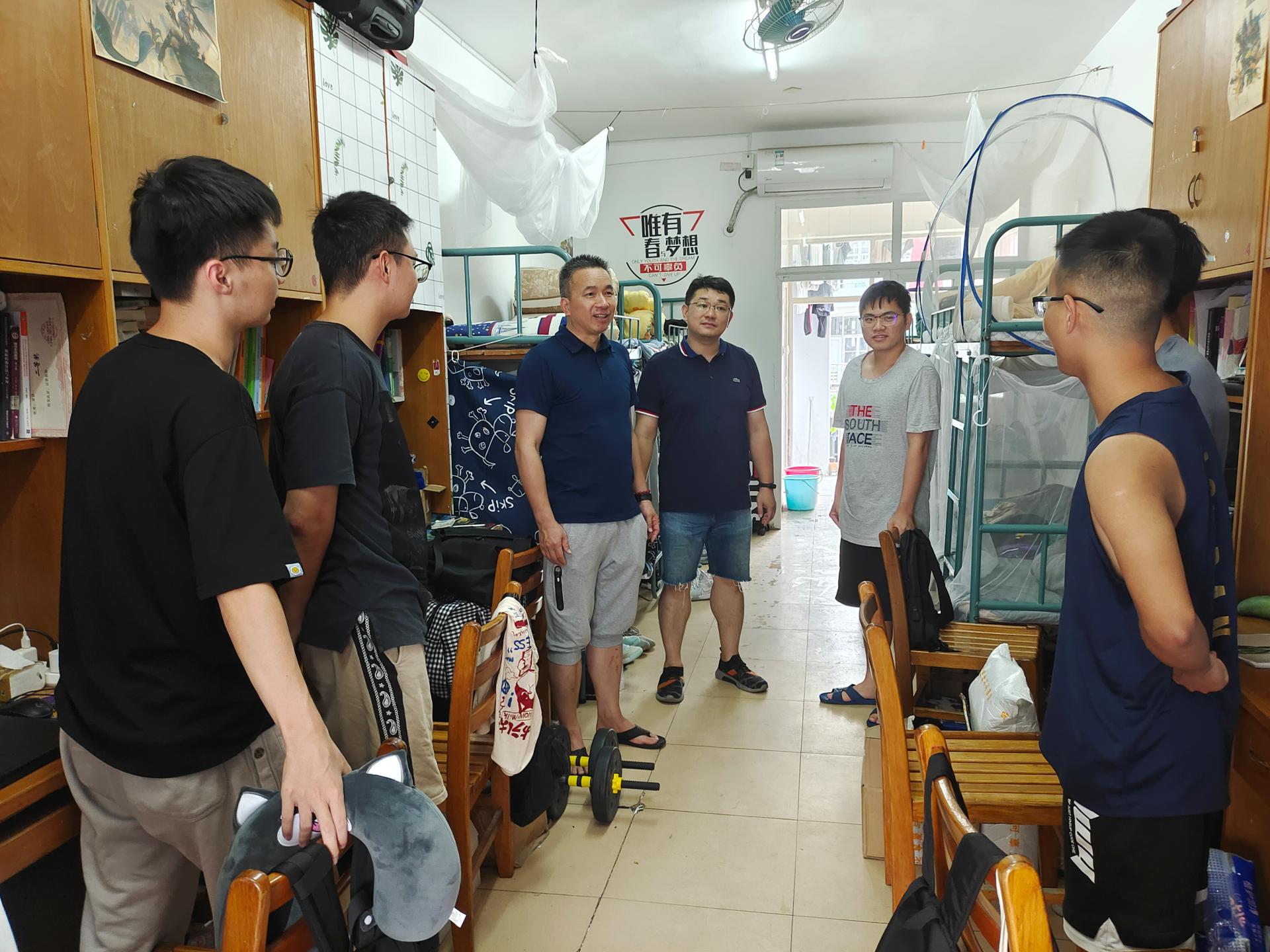 8月15日,计算机与信息安全学院党委书记文辉、副书记刘堂宇及年级辅导员,深入学生公寓看望学院暑期留校学生。