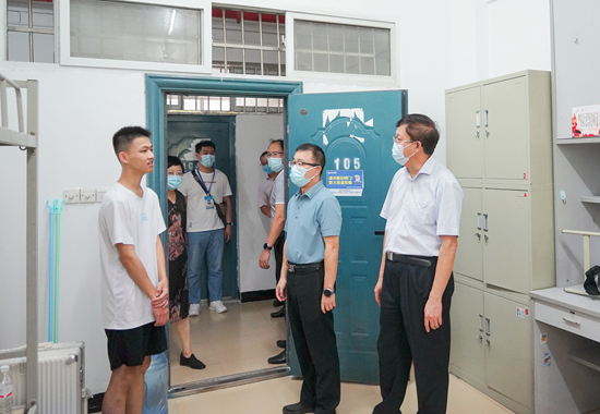 当天上午,校领导深入花江校区大门口、迎新大本营、核酸检测点、学生宿舍检查指导迎新工作,看望2022级新同学,亲切慰问迎新工作人员。“你是哪里人?学什么专业?刚来学校是否习惯?有什么困难要及时跟学校反映。”校领导每到一处就和同学们亲切交谈,鼓励他们尽快适应全新的学习生活环境,利用好桂电提供的学习资源和平台,积极进取、实现梦想。