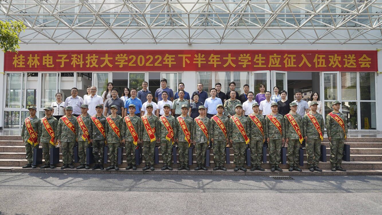 9月14日上午,我校在花江校区大礼堂举行2022年下半年大学生应征入伍欢送会。校党委副书记聂慧,灵川县人民武装部部长敖国旗上校,陆军特种作战学院程亮明中校,灵川县县委常委、副县长、学校人工智能学院党委书记张志刚出席欢送会,学校相关职能部门负责人和各学院学工负责、应征入伍大学生、毕业班辅导员以及有意向入伍的毕业班学生代表参加欢送会。会议由党委武装部副部长朱小精主持。