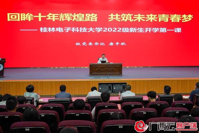 开学了!桂林电子科技大学每学期一次由党委书记、校长主讲的开学第一课,以线上与线下相结合的方式如期而至。学校大礼堂、图书馆报告厅,新生们青春的面孔,组成了桂电秋日校园里一道明媚的风景。