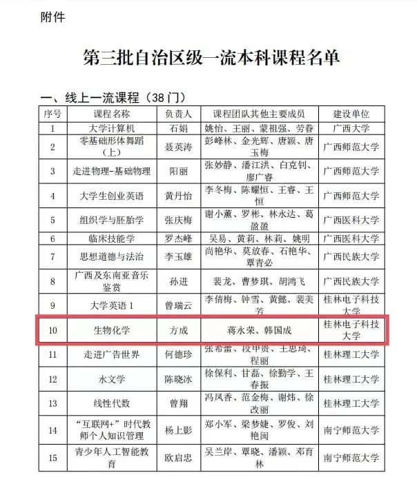 《生物化学》获自治区级一流本科课程