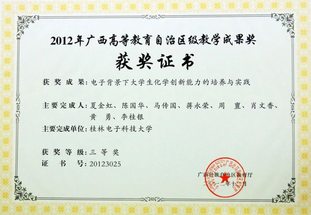 广西高等教育自治区级教学成果三等奖