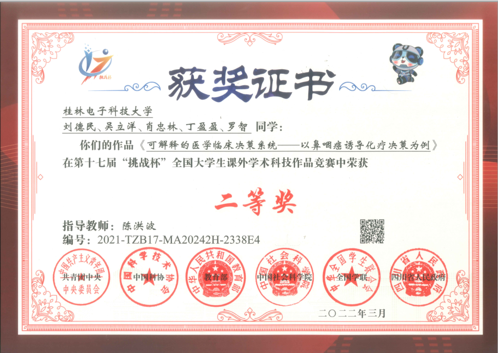 “挑战杯”全国大学生课外学术科技作品竞赛二等奖