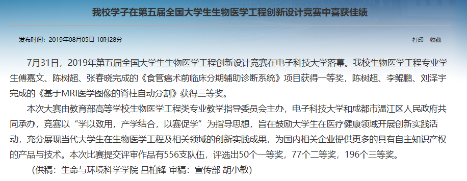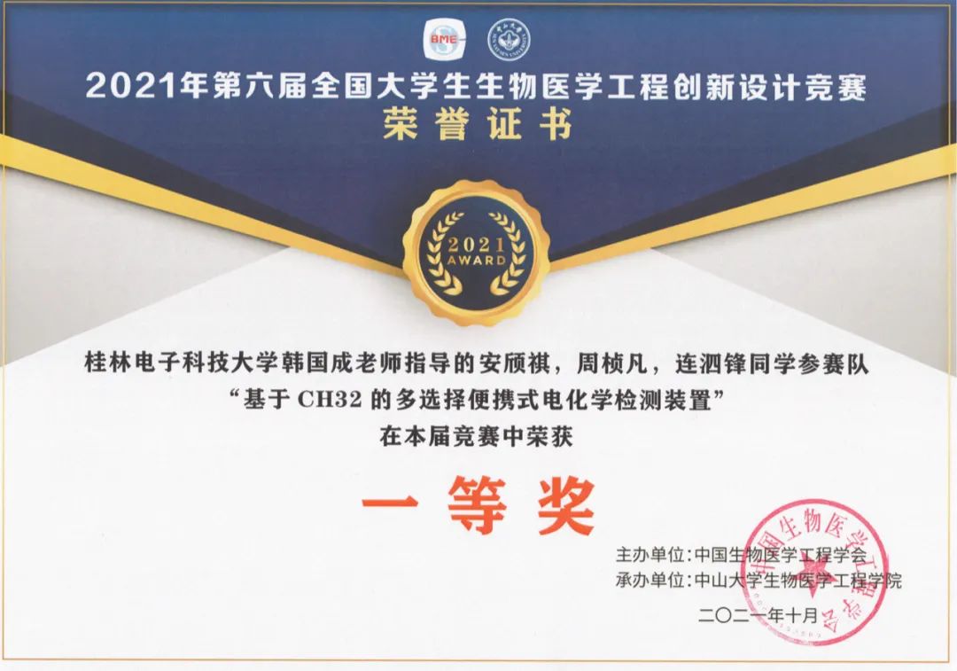 全国大学生生物医学工程创新设计竞赛一等奖