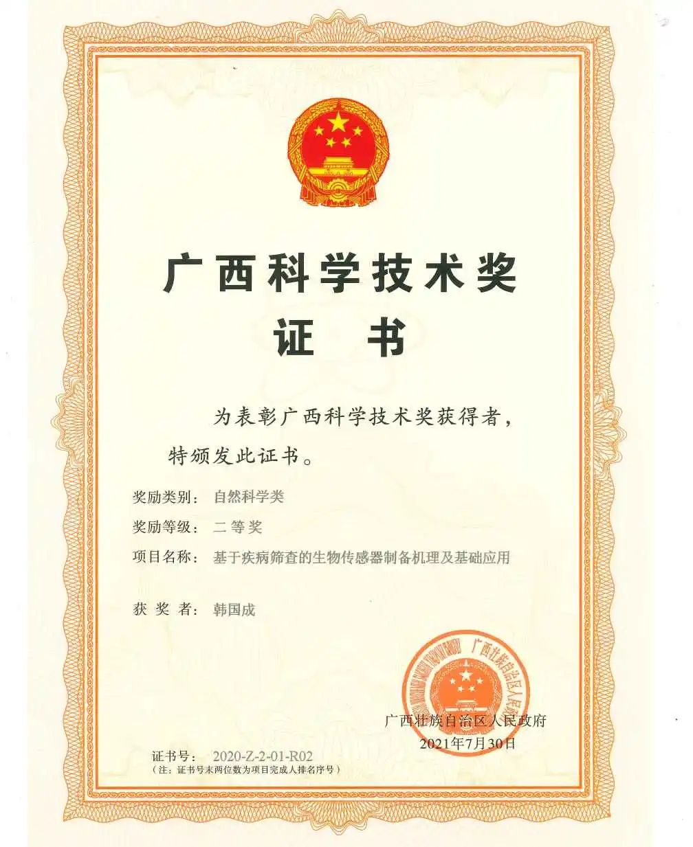 广西科学技术奖 (韩国成)