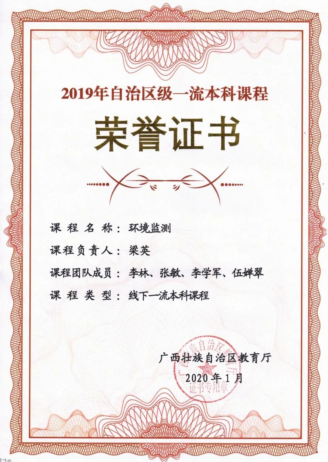 《环境监测》获自治区级一流本科课程