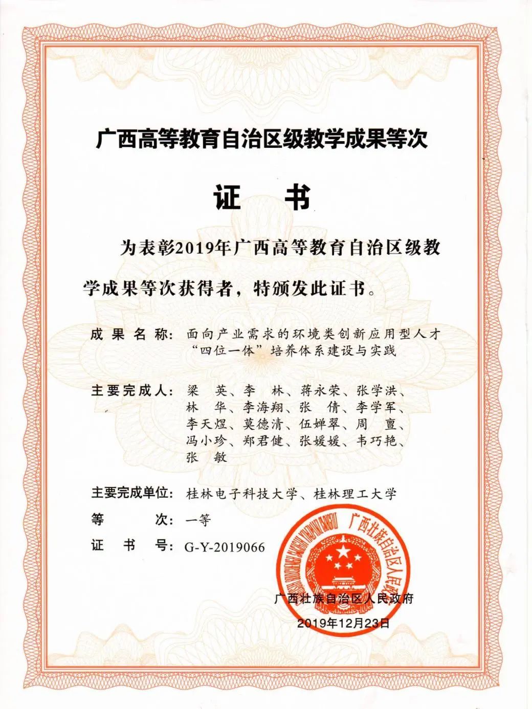 广西高等教育自治区级教学成果一等奖