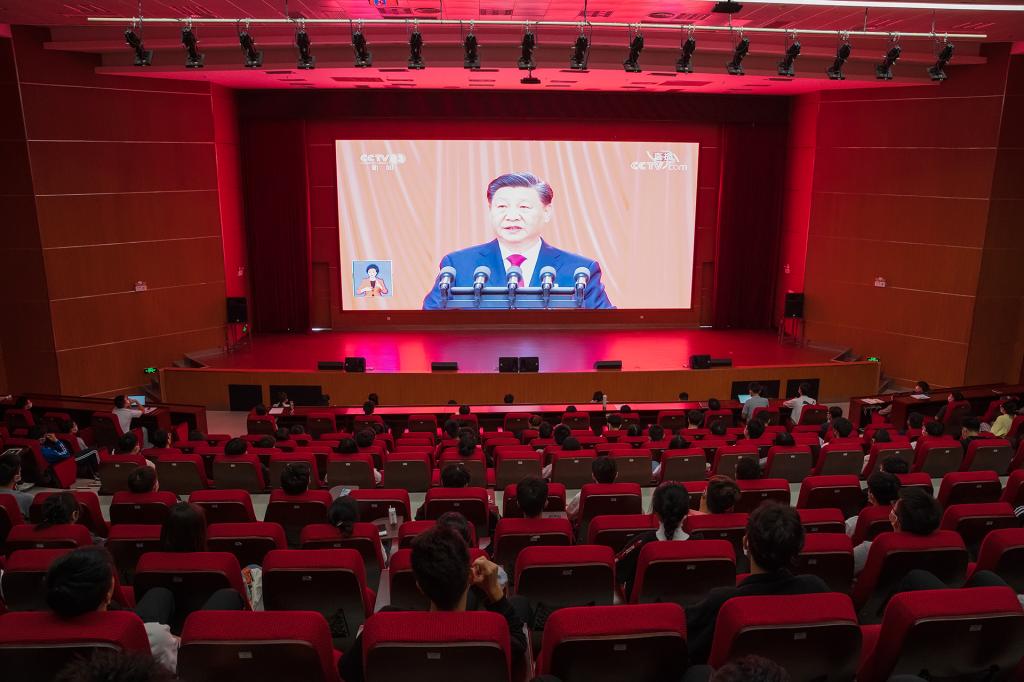 在做好疫情防控的前提下,根据学校党委的部署,全校党员干部和广大师生通过各种方式收看开幕会盛况。全体在校校领导、全体中层干部和师生代表分别在花江校区会议中心大礼堂和图书馆报告厅集中收看开幕会直播。北海校区、南宁研究院以及各学院、各部门组织师生集中收看开幕会盛况。其他师生员工通过网络、电视自行收听收看。