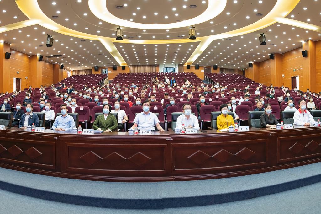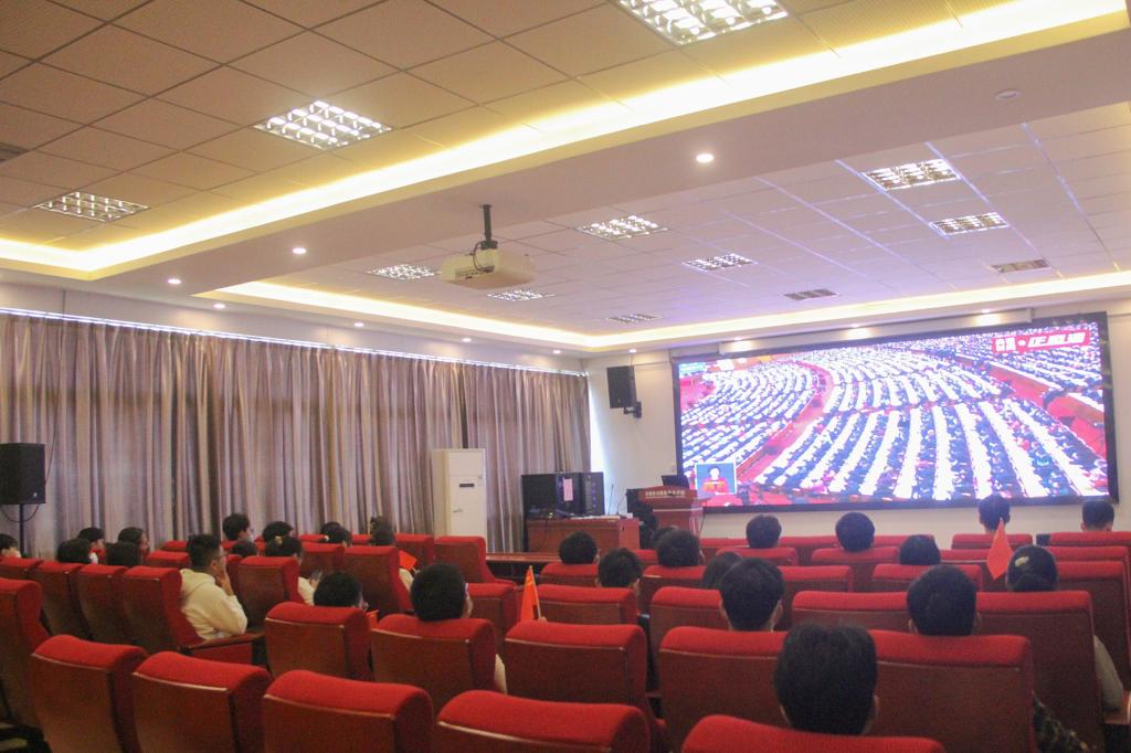 我校组织学校领导干部在花江校区会议中心大礼堂收听收看大会直播