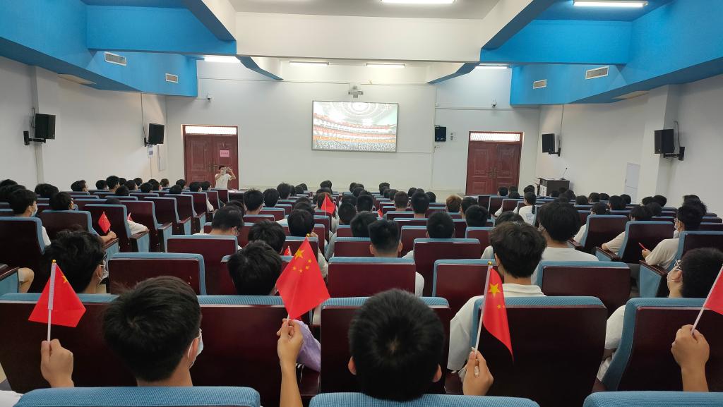 我校组织师生代表在图书馆报告厅收听收看大会直播