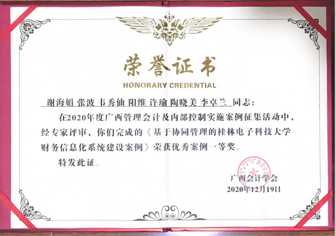 财务信息化系统建设荣获广西会计学会优秀案例一等奖