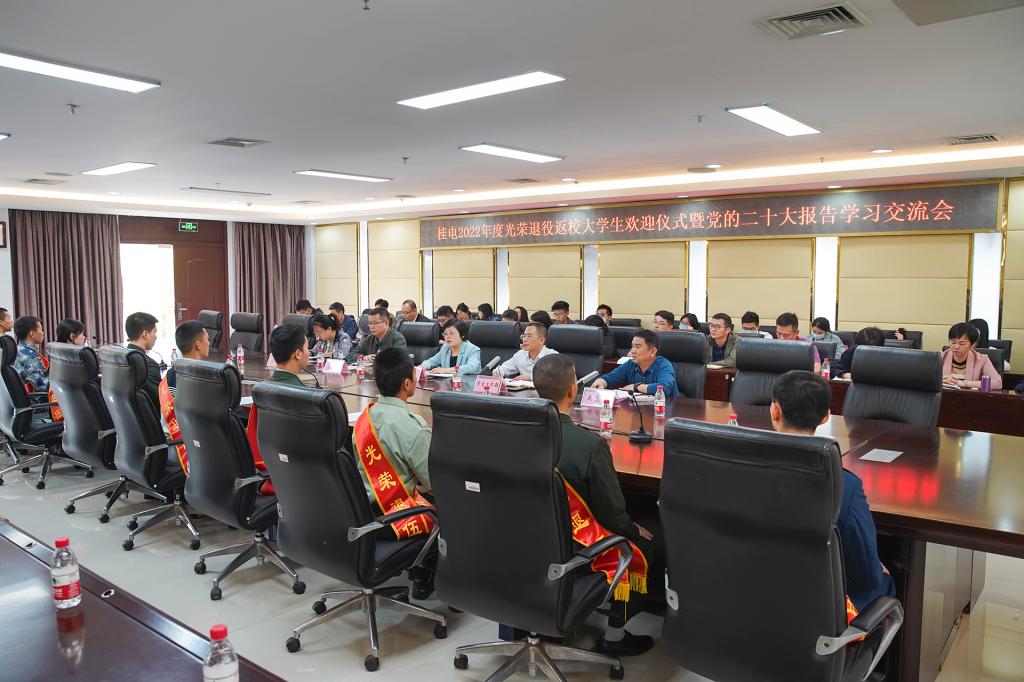 会上,校党委武装部副部长朱小精介绍了退役复学大学生的基本情况。退役复学大学生代表苏泓亦分享了参军入伍体会,表示在今后的工作学习中,会以饱满的军人姿态要求自己,把在部队学到的优秀品质带到日常学习生活与工作中,树立远大志向,秉承桂电精神,锤炼品德,勇于创新,不断提高自身的全面发展,为自己再立新功、为桂电争得更多的荣誉。随后,退役返校大学生结合自身的经历,畅谈交流了学习党的二十大报告心得体会。大家纷纷表示,将坚定信念永远跟党走,不辜负部队的培养,不辜负学校的期望,继承和发扬军队优良传统,以更加勇敢、坚毅的精神状态和实际行动面对学习和生活中的挑战,为学校的发展贡献出自己的一份力量,在实现中华民族伟大复兴的生动实践中放飞青春梦想、书写人生华章。