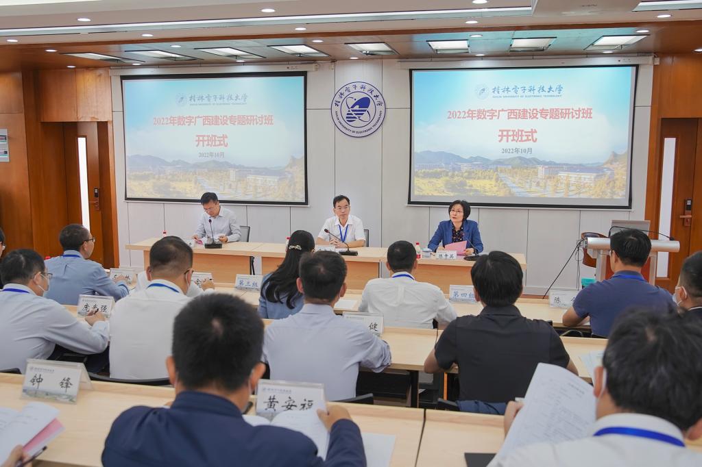 10月17日至21日,由自治区党委组织部主办,自治区党委区直机关工委、广西干部教育培训桂林电子科技大学基地共同承办的“数字广西建设专题研讨班”在我校举办,来自区直机关、区管高校、区直企业、中直驻桂单位以及设区市相关部门的处级干部参加了本次培训。
