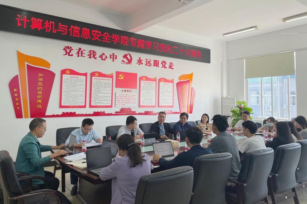 10月21日上午,计算机与信息安全学院在花江校区5503会议室召开本年度第六次党委理论学习中心组学习会,下午在花江校区5506会议室召开全院教师大会,专题学习党的二十大报告。学习会由学院党委书记文辉主持。