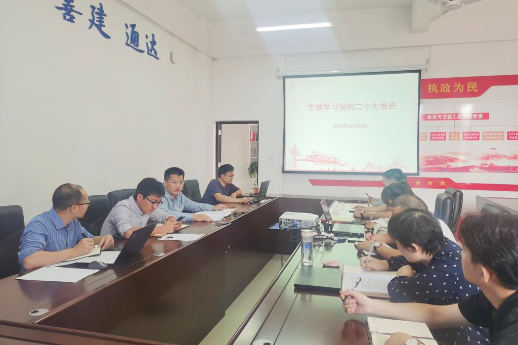 10月24日下午,建筑与交通工程学院党委在建交大楼412会议室召开中心组学习(扩大)会议,专题学习党的二十大报告。学院党委委员、党支部书记、组织员参加会议,会议由学院党委书记陈文武主持。