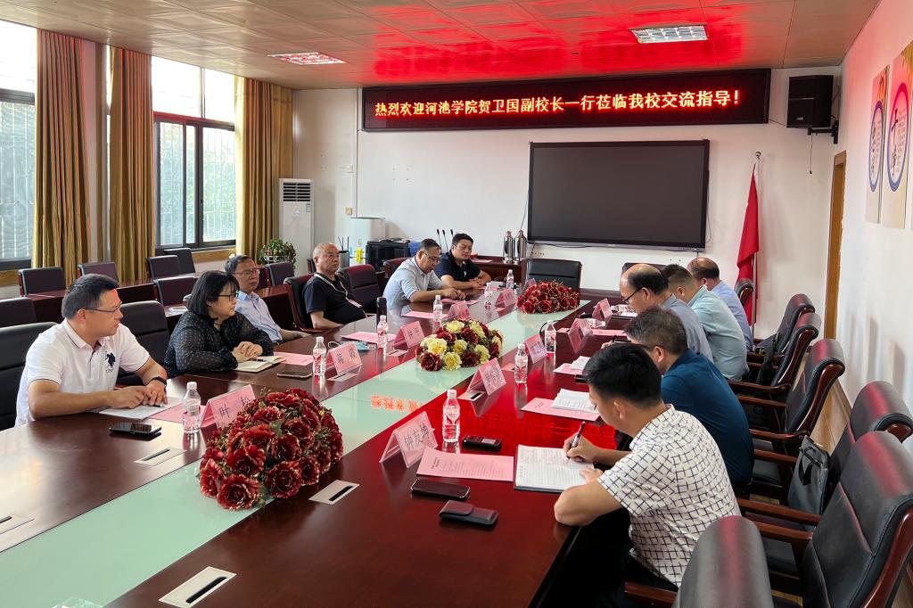 10月25日下午,河池学院副校长贺卫国一行来校调研交流。副校长钟平接待了贺卫国一行,并在金鸡岭校区桂电中学会议室召开座谈会。人事处、国资处、校工会、桂电中学等相关部门负责人参加座谈。
