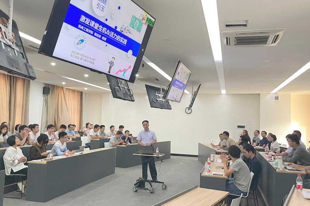 为了激发课堂的生机和活力,增进教师和学生的课堂互动交流,10月26日下午,由教务处与机电工程学院联合举办的“激发课堂生机&活力的实践”教学沙龙活动在花江校区16教507室举行,各学院教师积极响应,到场聆听了机电工程学院教授杨连发作的主题报告,并对课堂教学中的种种困惑进行了研讨。