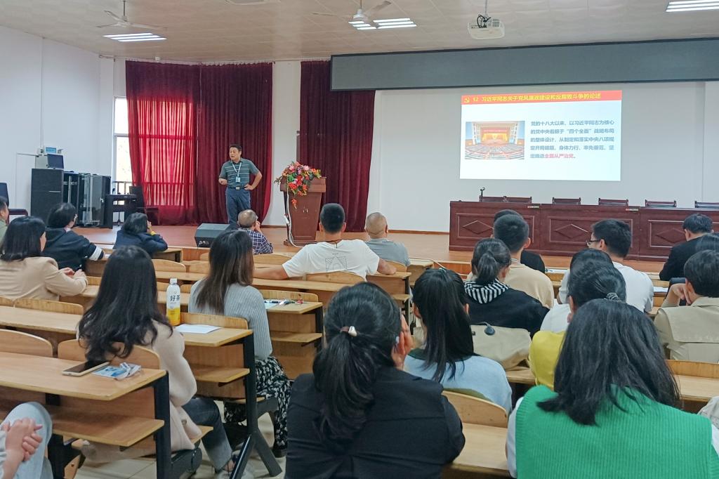 11月1日下午,桂电中学党委书记杨剑为中学全体教工党员上党风廉政建设专题党课。