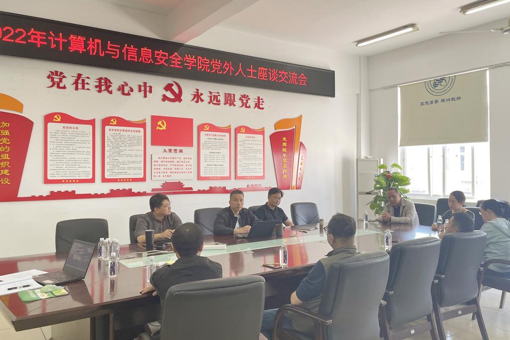 11月2日上午,计算机与信息安全学院在花江校区5503会议室召开党外人士座谈交流会。会上,学院党委书记文辉领学了党的二十大报告精神,重点学习了习近平总书记在报告中关于”积极发展基层民主“”巩固和发展最广泛的爱国主义统一战线“这两节讲话内容精神,并结合学院当前各项工作谈了学习体会。学院院长刘建明对所有党外人士为学院发展所做的贡献表示感谢,向与会人员通报了学院各项工作进展,介绍了学院未来关于科研、学科、教育等方面的发展规划。与会代表就学院学科建设、专业发展、教学改革、管理服务等方面工作,重点针对学院计算机科学与技术专业博士点申报工作以及学院人才培养与人才引进工作提出了建设性的意见及建议。
