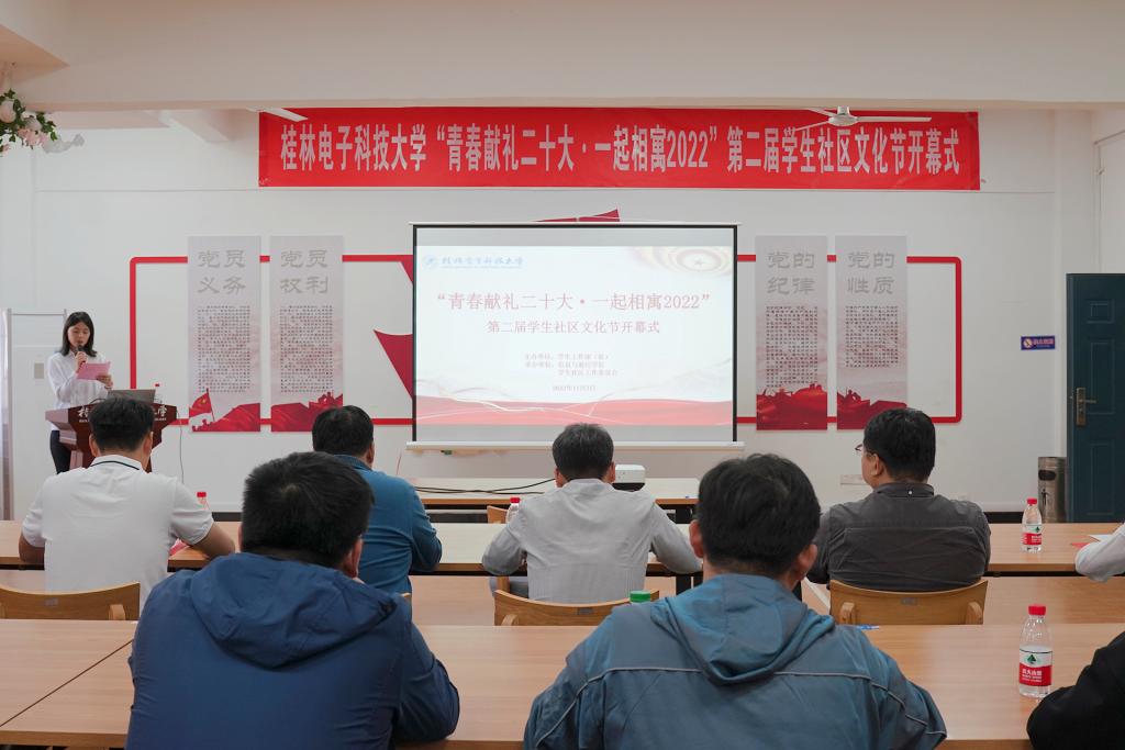 11月2日,由学生工作部(处)主办,信息与通信学院、计算机与信息安全学院和学生社区工作委员会承办的我校第二届“青春献礼二十大·一起相寓2022”学生社区文化节开幕式在花江校区学生社区D区25栋101党团活动室举行,学生工作部(处)副部(处)长刘铁园、计算机与信息安全学院党委副书记刘堂宇、部分辅导员、房管员、学生干部、楼管会、宿舍长参加了开幕式。
