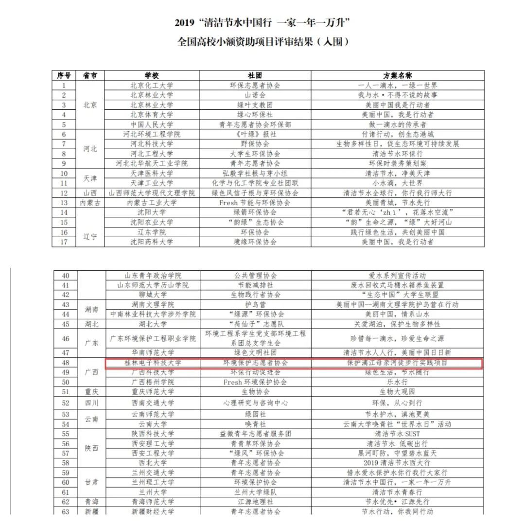 环境保护志愿者协会入围“清洁美丽青春行”全国高校小额资助项目