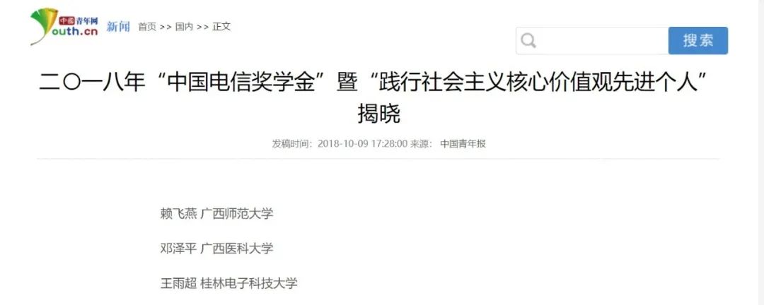 中国电信奖学金暨践行社会主义核心价值观先进个人奖
