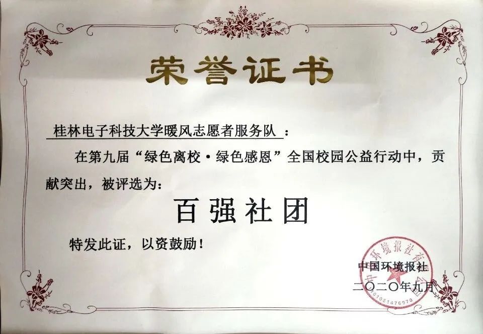 第九届全国校园公益行动全国百强社团