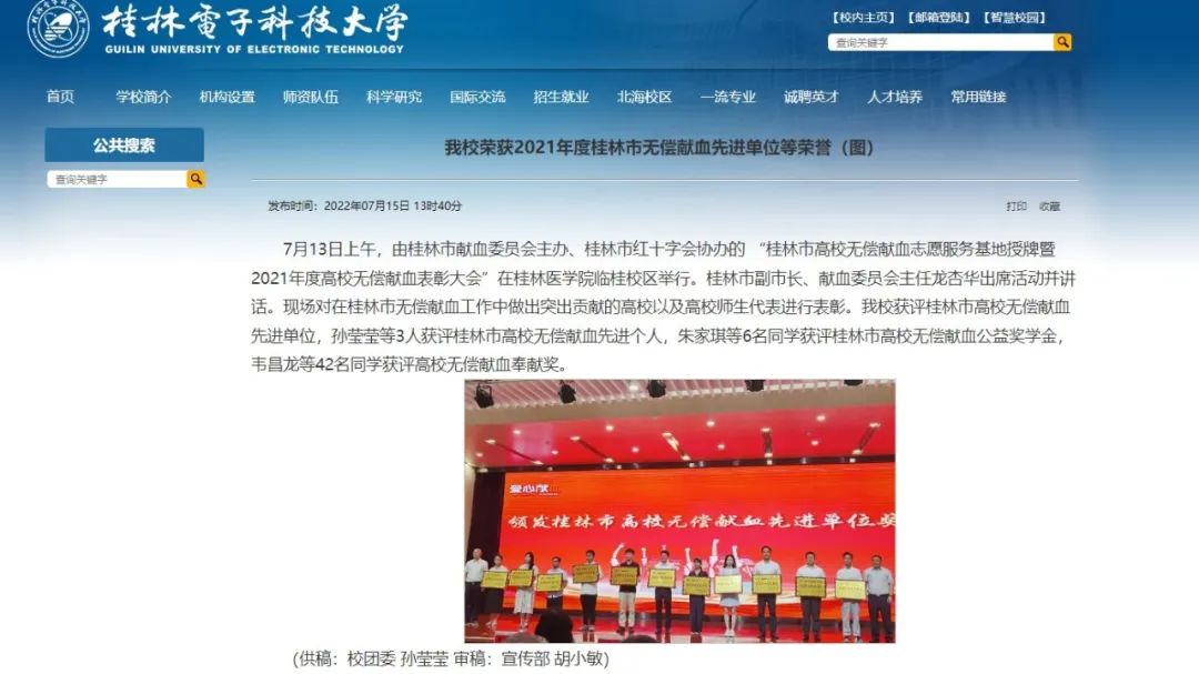 学校荣获2021年度桂林市高校无偿献血先进单位