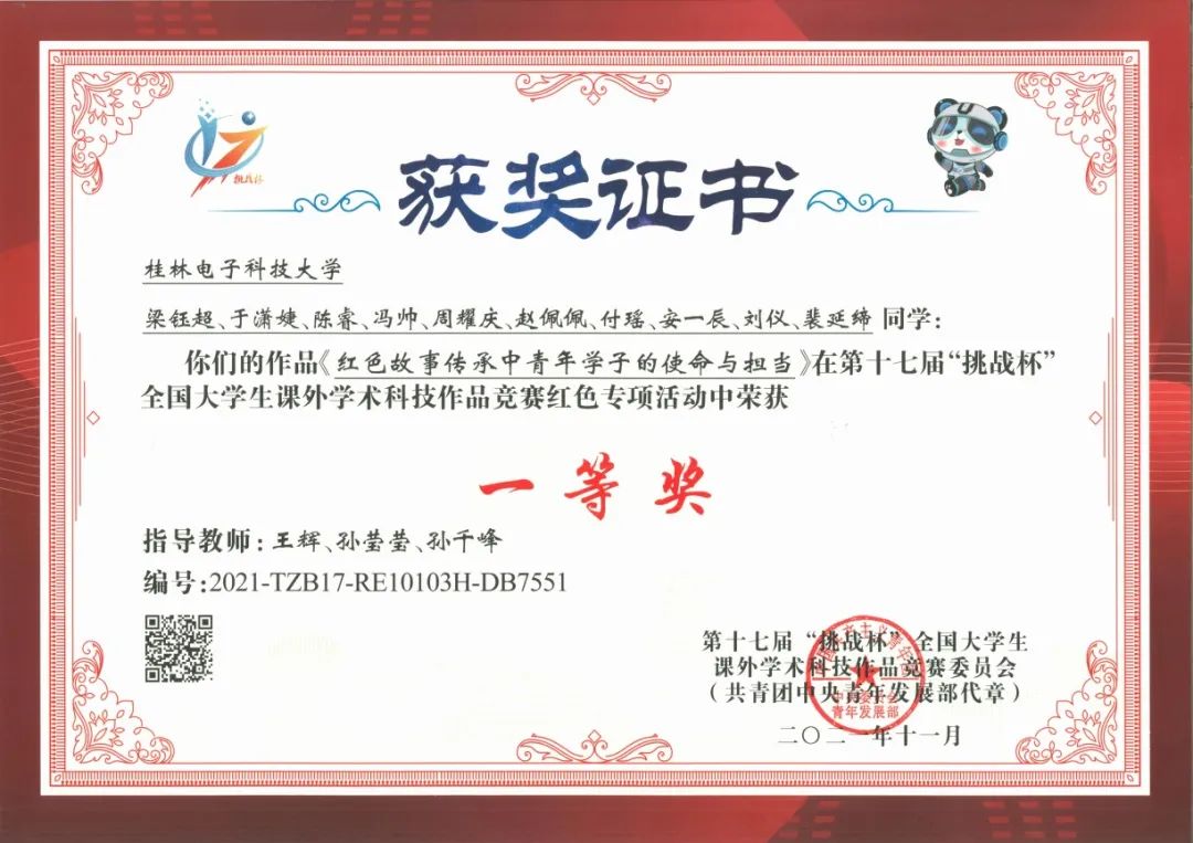 “挑战杯”全国大学生课外学术科技作品竞赛一等奖